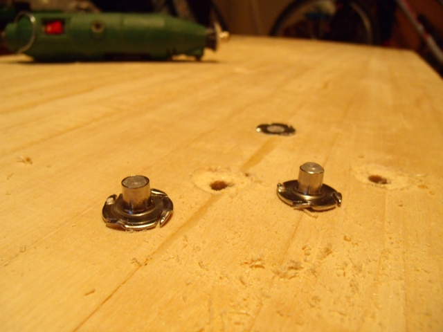 дальше надо снять немного дерева под основания гаек. на предыдущей доске это сделал просто ножиком, но тут вот нашлась бормашинка и все очень быстро выфрезировалось.