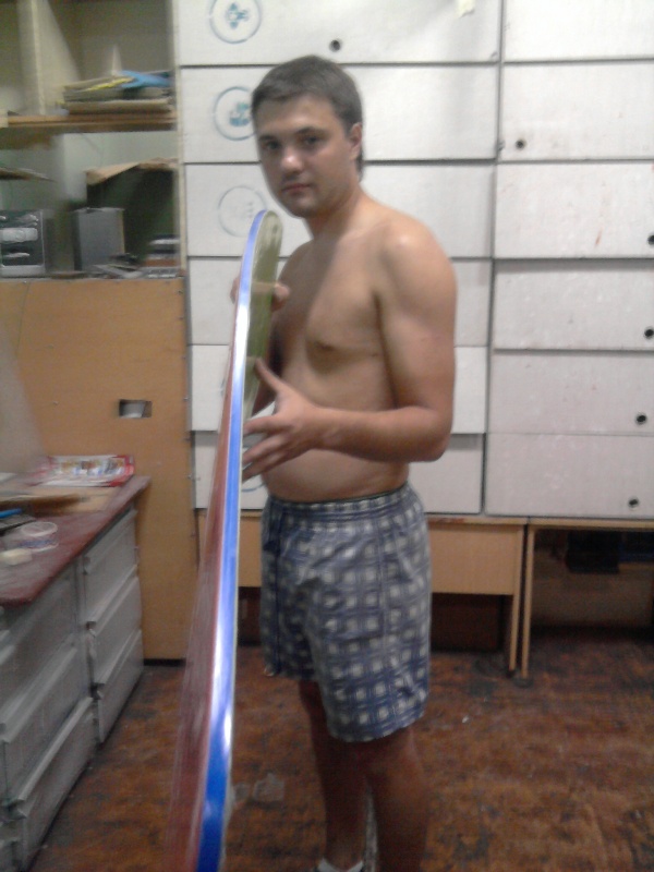 то Rave_n: технология токая - делаю выкройку (щит дерево края 4 мм цэнтр 8-9мм), все сделано из ели!!! и не глумитесь рейка липа 1.5 м стоитт 300 р. (это в костораме) липу брать не стал, сделал еловый щит (замечу что сосна лучше - меньше сучков),прошу не относиться ко мне строго(я лишаюсь девственности), и это мой первый борд, итак выкройка есть, плавники тоже(Болванки) падсы в процессе - изогнутый ПВХ - подоконник ПВХ -Годится???стеклоткань есть , т.е. купит можно но нужно ли??? какая ткань подойдет??