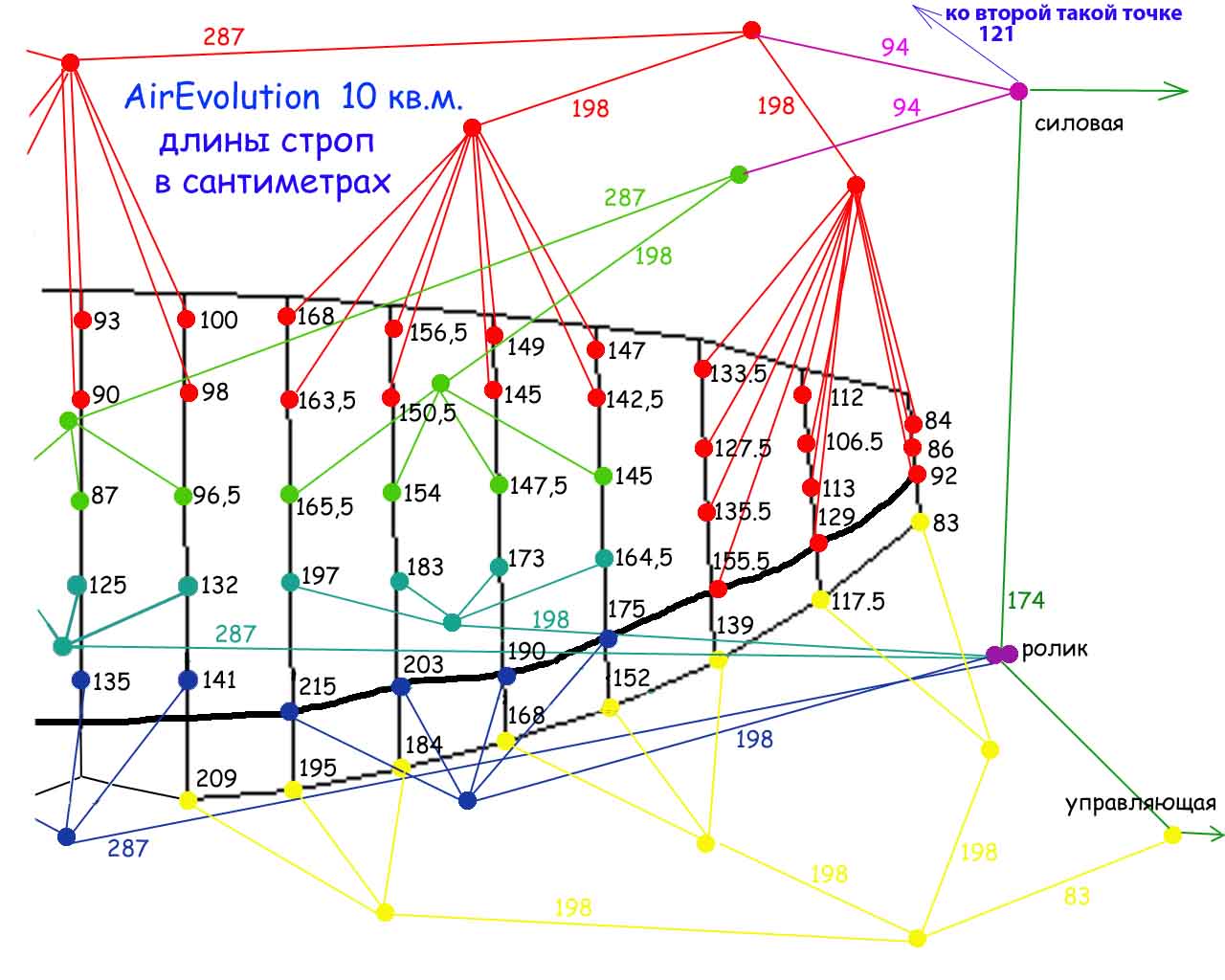 Насчтет количества строп - пока не знаю, для начала я хотел просто тупо повторить кайт за 47000 рублей, у меня он в 4000 руб. обошелся.