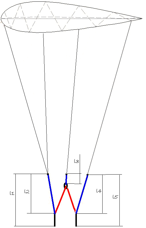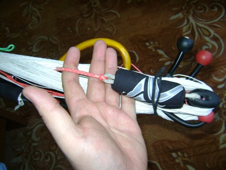 За этот узел будет крепиться управляющая стропа, идущая к концу планки.