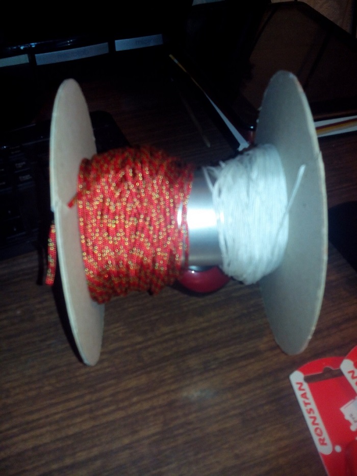 Нужного диаметра бусы стырить у жены не удалось. Кстати бусы могут оказаться очень не дешевые. Так что просто вставил в регулировочные узелки куски шнура чтоб быстрее перевязывать.