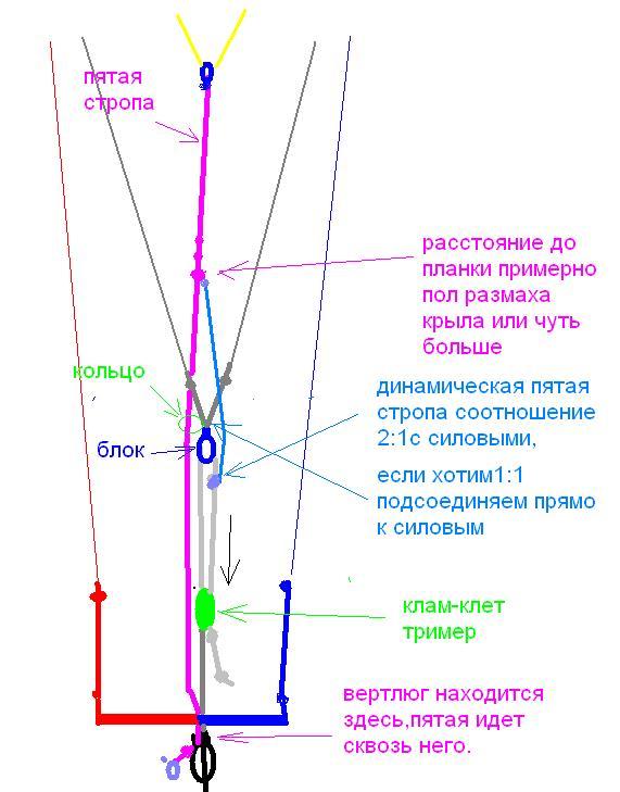 регулировка пятой стропы и динамической сделал так ( использовал шарик стопор от оригинальной бары аэруш
