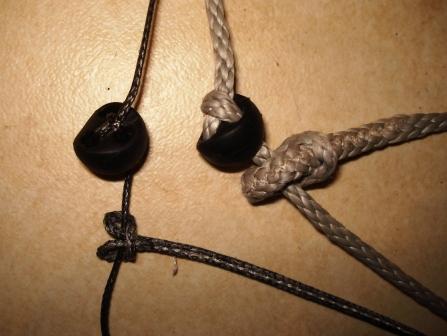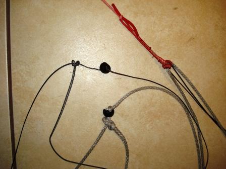 проходит в петельке и к стопору к пет. уже крепиться пятая подходящая непосредственно к куполу ( с такими стопорными шариками очень удобно производить подгонку строп +на баре на управляющих стропах тоже такие-же стоят .