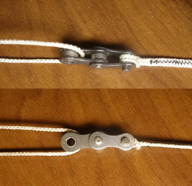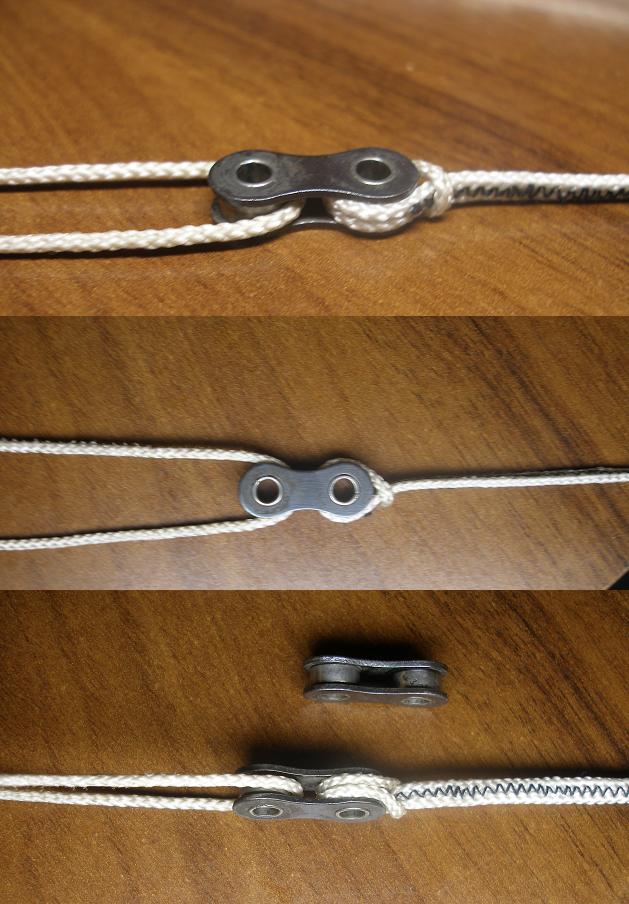 В этом отношении более безопасна металлическая ШПУЛЬКА от швейной машинки - получается, что петли двух строп всегда связаны.
