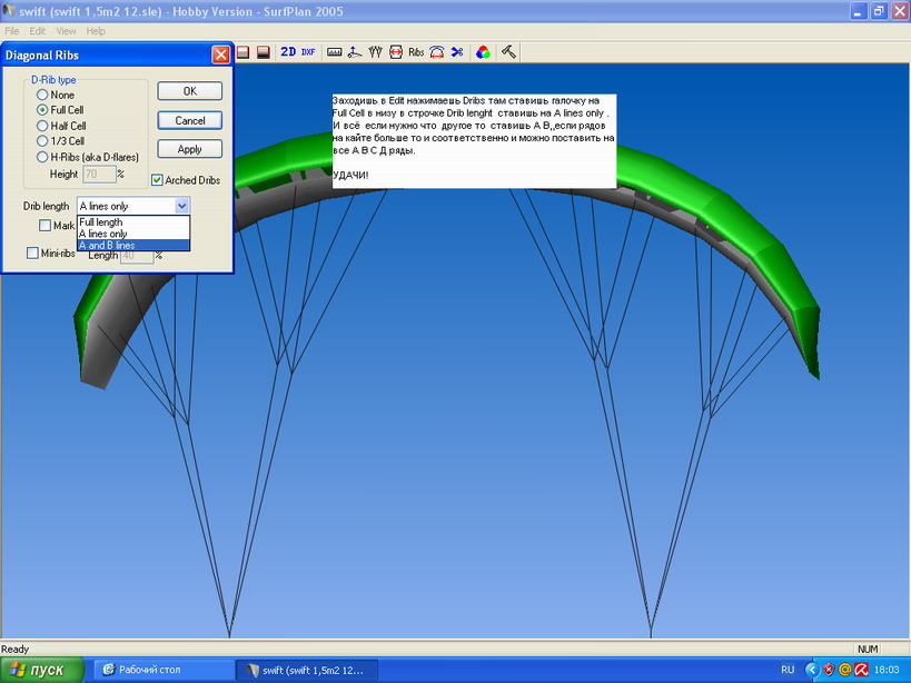 Нашел ответ в Изготавливаю парафойл (инструкция для чайника). Вообще, форум этот загадочный, вроде есть все, но найти что-то конкретное бывает непросто, может не привык еще.