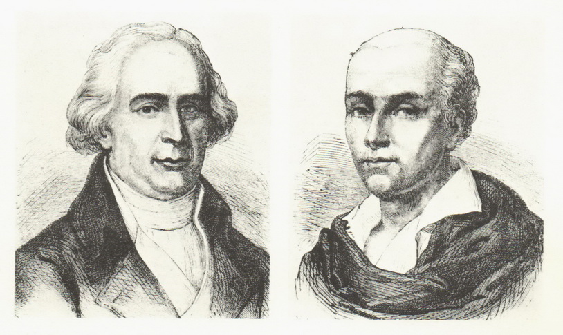 БРАТЬЯ МОНГОЛЬФЬЕ: слева - Жозеф, справа - Этьен (гравюра XIX в). Во время первой публичной демонстрации их воздушного шара Жозефу было 4З года, а Этьену 38 лет. Изображение Этьена скопировано с портрета работы его дочери.
