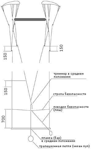 как сделать утягивание? правые и левые стропы А ряда соеденить вревкой?