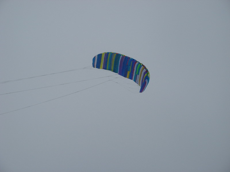 Но приятель катался на балонном кайте шестиметровом, ахренел, ему пофиг, и катался и прыгал. Мне же просто постоять с кайтом в зените не удалось.