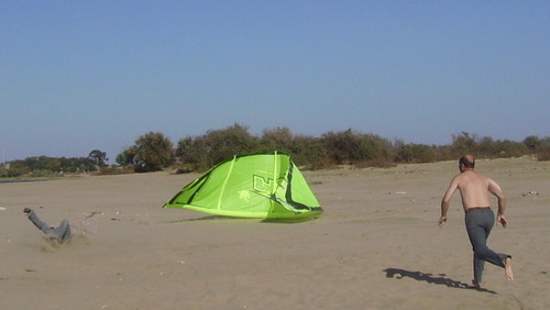 Смеялись долго, но кайт сдули спрятали. Позапускали маленькие, потренировались управлять на том и разъехались. Но на следующий раз решили позапускать на коротких стропах, что на фотках вы и наблюдаете. Стропы не родные. Но и на коротких ГАД тоже брыкался. И хорошо песок мягкий