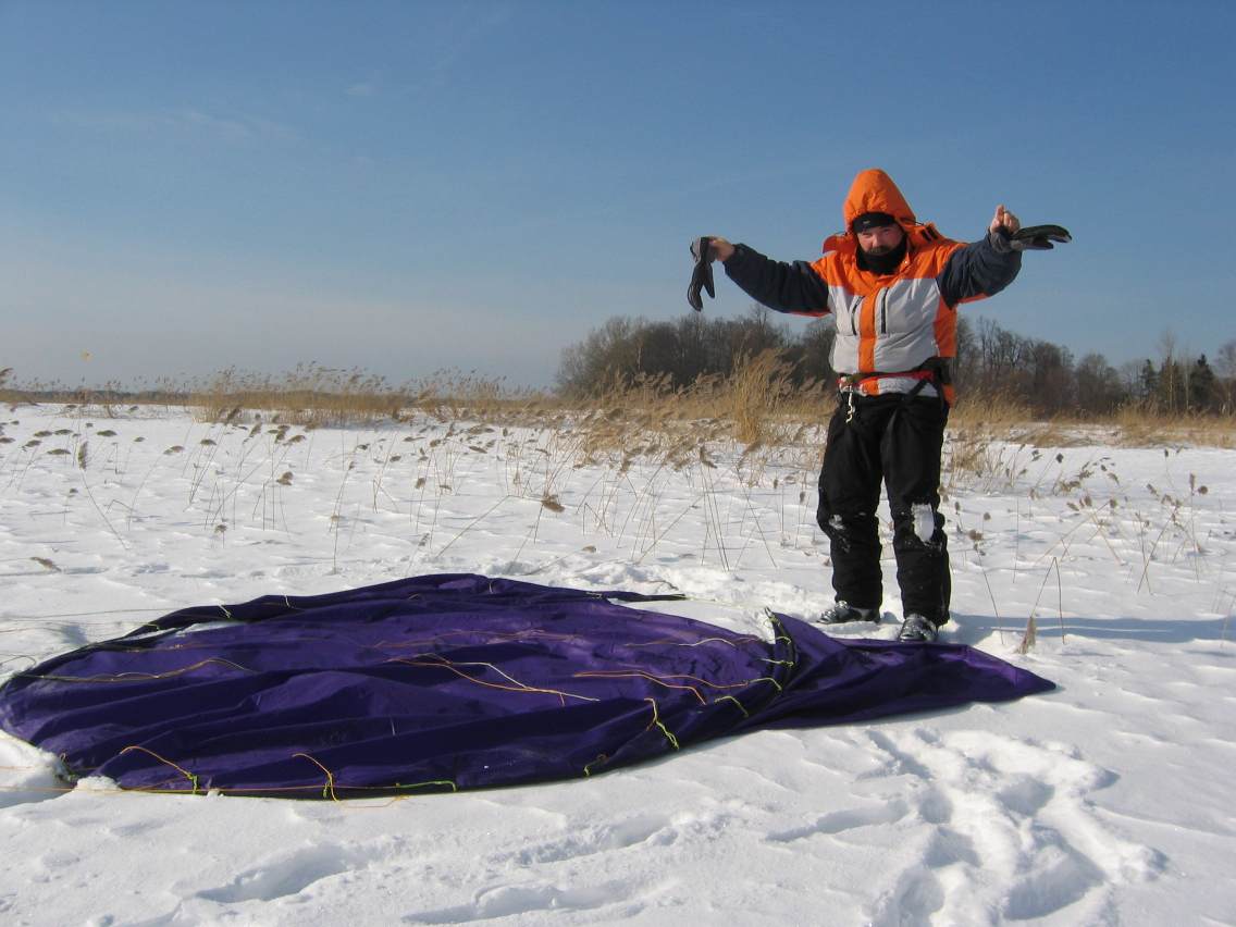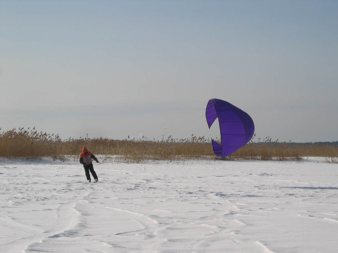 Ветра было 2-5м/с, снег глубокий и лыжи никак не всплывали, ползал еле-еле. И это при площади 12квадратов. Получалось разогнаться, только по натоптаной тропинке или следу от снегохода. Фойлом в этом случае можно махнуть, разогнаться, всплыть и дальше тяга растёт, а с этим такое не проделать.